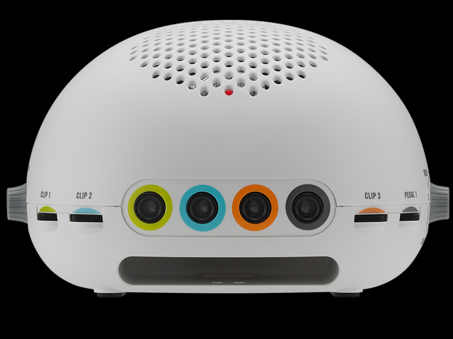 CLIPHITは、センサー内蔵クリップとフット・スイッチを付属した簡易的なドラム・キットです。クリップを取り付けた練習用パッド、雑誌、机、ダンボール等を叩くだけで、リアルなドラム・サウンドを演奏することができます。叩く強さで音量も変化し、ボリューム調整もクリップ/ペダル別に調整可能。2W出力/3インチ・スピーカー、そしてバスレフを搭載し、臨場感のあるサウンドでドラム演奏を楽しむことが可能です。